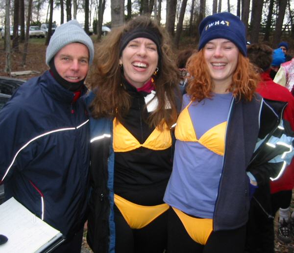 Anstr said people will write the list saying how great a particular event was and then later during a training run will tell you all the bad things about it. We're not going to do that here because we don't have to suck up to the RD. I think most people will agree with me that it was way too cold, the ground was too hard, and there wasn't enough pizza or wine. But for men and women alike, it was a good opportunity to hug and kiss people you don't know and have them sit on your lap and you sit on theirs. But let's talk about Team Mango.