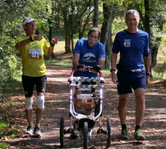 [Pinballing to the finish are - left to right - Charlie, Tom and Alan]