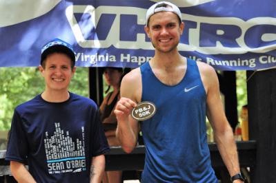 Krista Offield was the 1st place female and 4th finisher overall with a time of 4:57. New to the area, Krista charmed everyone with her easy running form and her friendly manner. But more to the point, she ran with style – her pink and green running ensemble precisely matched the colors on her phone cover. Mary Beth Strickler cruised to a 2nd place finish among the women, in 5:18, and Daisy Weill placed 3rd female (6:13).