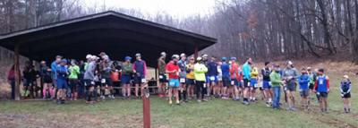 What do you get for an entry fee of $19.25? Coffee and cookies during the pre race inside the warm nature center. Aid stations second to none. An easy to follow course of trails, forest roads, open fields, plenty of hills and of course that stream crossing, and now that rope thing, as well as split second timing, a hot meal at the finish, and our trademark handmade mugs.