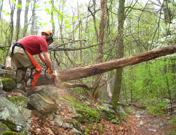![]() Ed Brimberg of the PATC saws a log as VHTRC crew looks on. Photo: Mary Campbell VHTRC Work Party -- A 52 Miler: The VHTRC held its annual trail work party on May 2. Several VHTRC members worked on trails in the Massanutten Mountains. Over 52 miles of trail were cleared. Again this year, the VHTRC workers were joined by biker, hiking, and horse groups. Many trail users, including the participants in MMT will profit from this work. Special thanks to Ed Brimberg of the PATC who helped coordinate the many groups that participated and to Mike Bur who coordinated the the many VHTRC volunteers. Gary... in the Washington Examiner. Annette Bednosky on Second Place Team at World 24 Hour Championship: The U.S. women's team was second in the World 24 Hour Championship held in Bergamo, Italy on May 2-3. Annette was second U.S. woman, ninth woman, and 43rd overall. She ran 208607 meters, which according to the VHTRC.org data analysis center is 129.62238029905353 miles, more or less. Report | Results | Annette's Blog Entry Mike Campbell Excels Again: Mike was third at the 24 hour trail run put on by Scott Crabb and Alex Papadopoulos in Prince William Forest Park. In the women's division, Linda Gaudette was second and Debbie Daughtry was third. Event Web site Andrish Wins Promise Land 50km: Sean lead all runners over the beautiful course on a hot day. The first VHTRC female finisher was Amy Sproston who was second overall woman behind Bethany Patterson. Results | Report by Rob Colenso | Photos on Flickr by: Quatro Hubbard | Bobby Gill Old News on April 18: We failed to report the following. Stuart Kern was second (missing first by only a quarter of a mile) at the 24 Hour Relay for Life held in the Tidewater area. David Snipes also participated, running 50 of this miles at Bull Run Run. results Meanwhile, on the left coast, former BRR RD's Scott Mills and Chris Scott finished the Leona Divide 50 miler. We have known this for some time, but have been waiting fruitlessly for the results to appear. We think that Mills won his age group. For Chris, we are all happy to see him back running again. Event Web site ![]() Amy Sproston runs second fastest Bull Run Run. Photo: Aaron Schwartzbard Schmitt and Sproston Win Bull Run Run: Leigh Schmitt ran 6:31:14 in very warm weather at the 17th Bull Run Run 50. Amy Sproston was first women running 7:34:05, the second fastest female time at the event. The weather was beautiful but a bit warm for the runners. Third place Andy Hill from Canada noted that this was his first run of the year not with tights. There were 314 starters and 266 finishes. Report, results, and photos | BRR Home page VHTRC Member Wins Boston Marathon: Harland Peelle won the Boston Marathon (in Iraq) in a time of 2:54:39. Check out his certificate. BRR management participated in the lesser known Boston version of the event. Aaron Schwartzbard, our photographer, mailed in a 2:38:23 and BRR Chief Financial Officer Sydney Shepherd ran a 3:59:54. There were certainly others there. Boston Marathon Web site. Amazingly, an American actually finished in the top 10! Umstead: Results are now available from the Umstead 100 miler held on April 4. Results | Umstead 100 Web site
